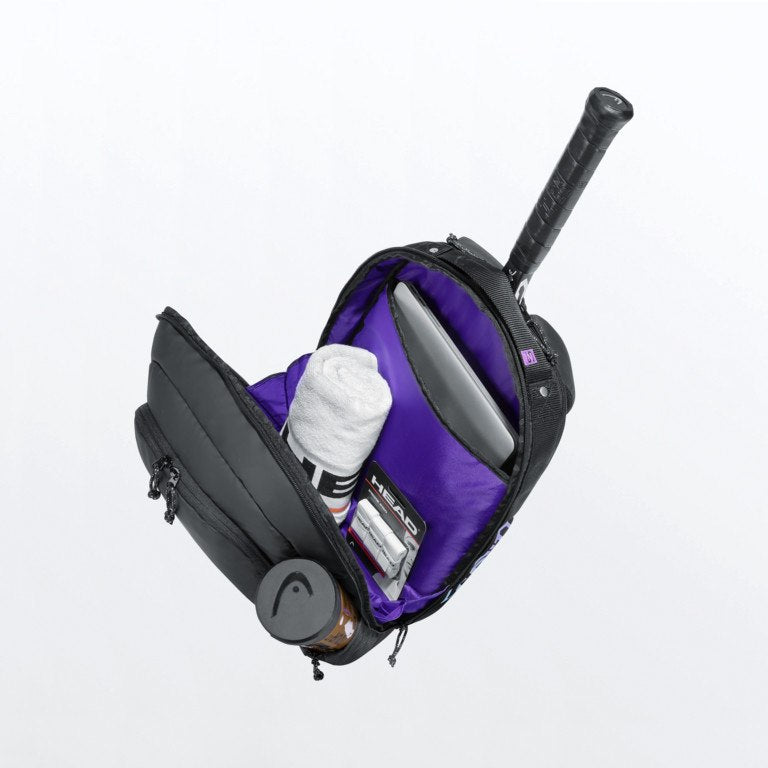 בין אם אתה מבלה את היום במשחק טניס או נוסע במטוס או ברכבת, ה- GRAVITY BACKPACK החדש הוא המלווה המושלם. מוצע כעת בצבעוניות רעננה התואמת את סדרת המחבטים GRAVITY של HEAD, לתיק גב זה יש כמה תאים המאפשרים לך לארגן את חפציך. הודות לפתיחתו הרחבה, יש לך גישה נוחה מאוד לתא הראשי וכן לכיסי האביזרים הקטנים הנוספים. בנוסף לתא נעליים משולב, ל- GRAVITY BACKPACK יש כיס בקבוקים מתכוונן.
